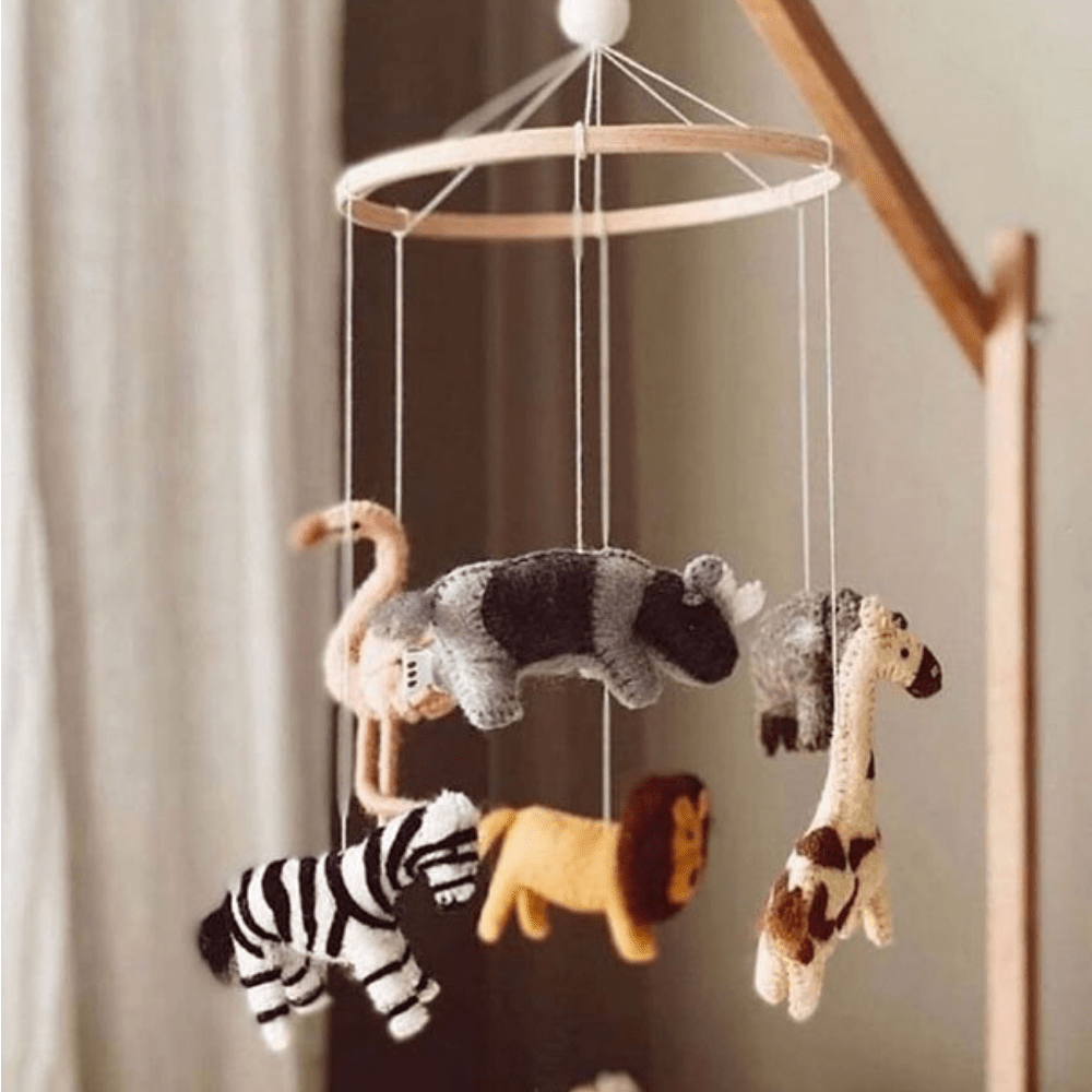 Voor een natuurlijke en unieke uitstraling kies je een boxmobiel van vilt. De zachte materialen en handgemaakte details maken deze mobielen niet alleen duurzaam, maar ook een echte eyecatcher. Onze vilten babymobielen zijn verkrijgbaar in diverse ontwerpen, zoals de boerderijdieren en dino's.